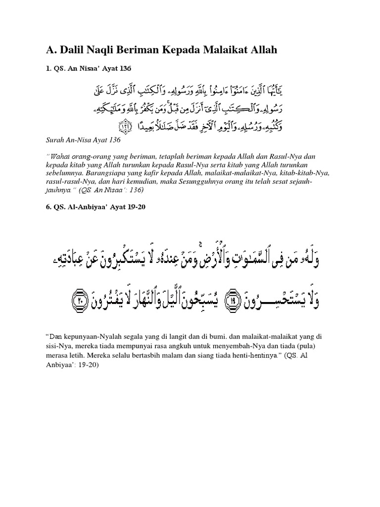 Dalil Aqli Dan Naqli Iman Kepada Malaikat Pdf